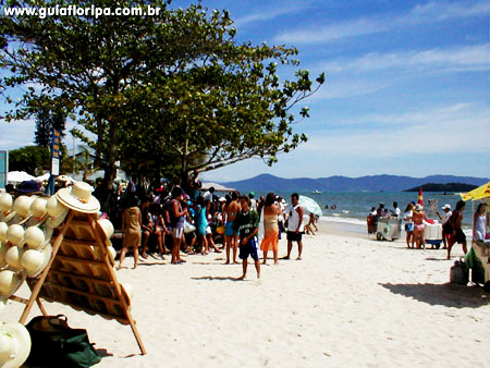 com o forte comércio de souvernis e acessórios praianos durante a alta temporada.